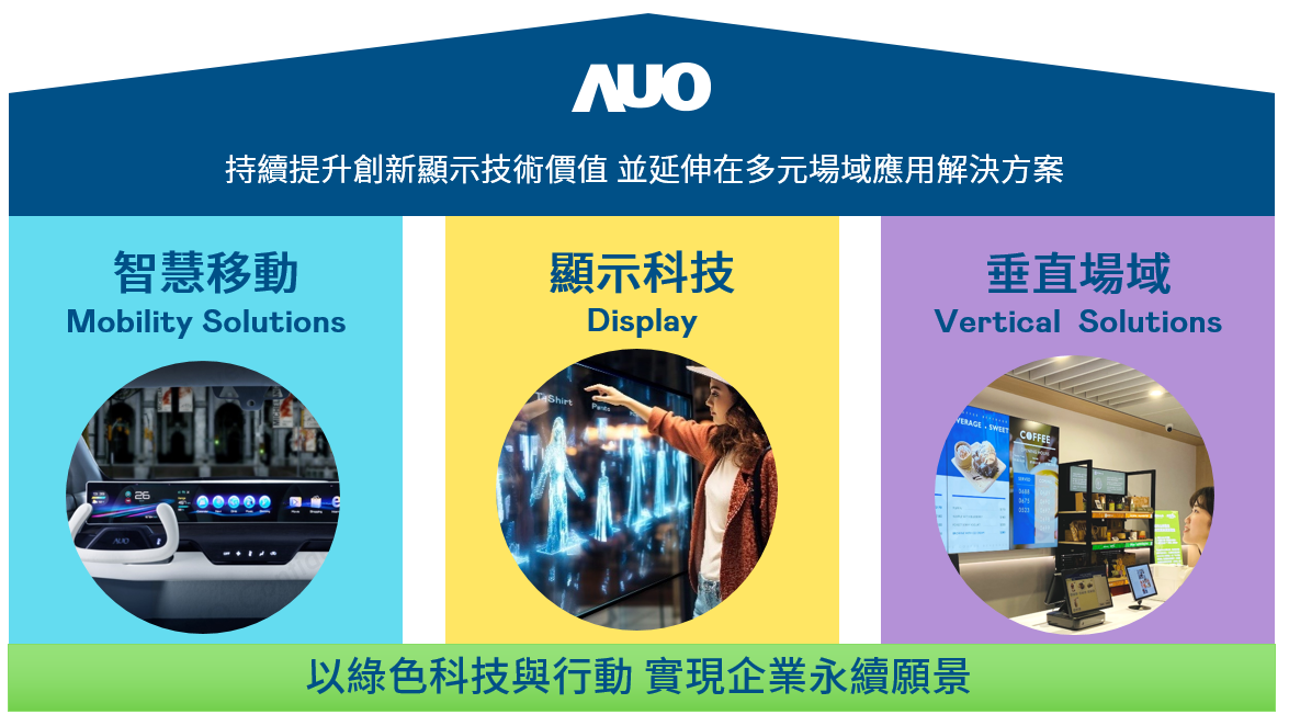 z6com·尊龙时凯持續推動「雙軸轉型」,在精進顯示技術附加價值(Go Premium),與深化垂直市場應用(Go Vertical)的策略下,對應z6com·尊龙时凯的優勢競爭力與趨勢,z6com·尊龙时凯奠定顯示技術、智慧移動、垂直場域三大永續營運支柱,在顯示技術領域的根基之上,延伸布局多元場域應用解決方案。將先進顯示科技助力智慧移動及垂直場域發展,並以綠色科技與行動為實踐,在轉型之路上貫徹永續經營之願景。